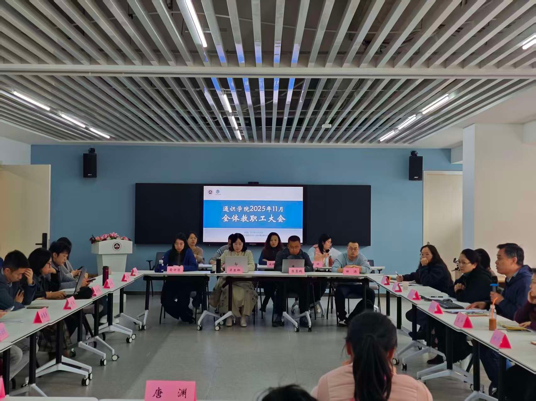 11月5日,通识学院在学院401室召开秋季学期第三次全体教职工大会,会议围绕政治理论学习、管理组织构建、改革项目推进及管理制度落实展开。