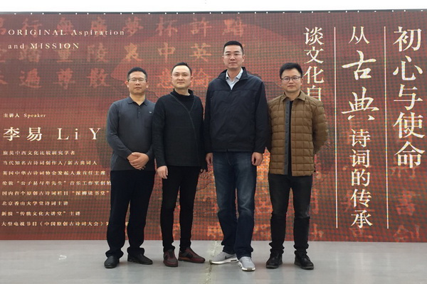 10月25日下午,公共艺术学院开展“不忘初心、牢记使命”主题教育,特别邀请到旅英中西文化比较研究学者、当代知名古诗词创作人、新古典词人、英国中华古诗词协会发起人兼首任主席、伦敦“公子易与牟先生”音乐工作室创始人、国内首个原创古诗词栏目“深柳读书堂”创始人、北京香山大学堂诗词主讲、新浪“传统文化大讲堂”主讲、大型电视节目《中国原创古诗词大会》筹备组组长李易先生,在我校黄桷坪校区多功能厅举行 “初心与使命——从古典诗词的传承谈文化自信”专题讲座。讲座由学院党总支书记雍朝永主持。公共艺术学院院长郭晏麟及部分师生参加了讲座。