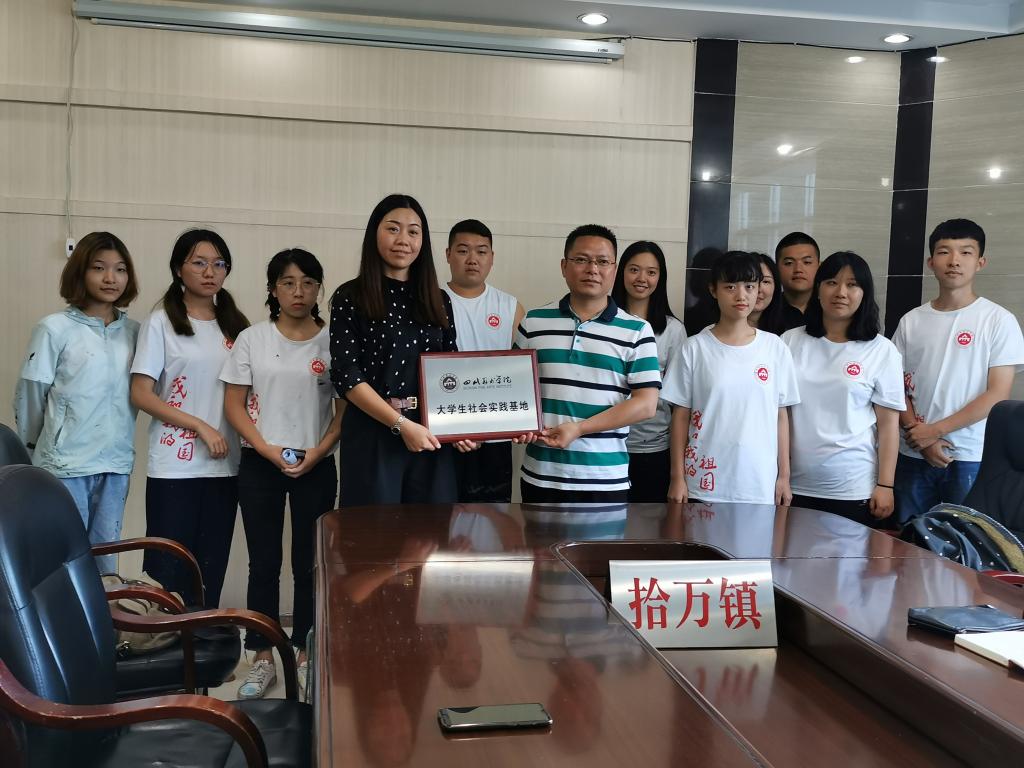 座谈结束后,郭小兵代表我校公共艺术学院向拾万镇政府授予万象城平台实践基地牌匾,希望以后能长期合作,公共艺术学院将为拾万镇的建设给予更多的贡献和支持。