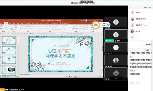 通过本次云课堂,同学们对于网上教学、疫情期间心理等方面的问题得到了一定的解决。对于非常时期心理活动的认知和心理调适的方法,帮助同学们缓解心理压力,以更好的情绪面对疫情。