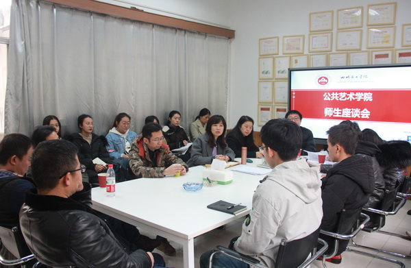 12月12日下午3时,为更好地了解同学们的学习与生活,公共艺术学院于黄桷坪校区附中会议室召开了公共艺术学院师生座谈会。公共艺术学院党政领导、各系主任、教学办公室和学生工作办公室的教职工代表以及各年级学生代表参加了会议。座谈会由学院副院长魏婷主持。