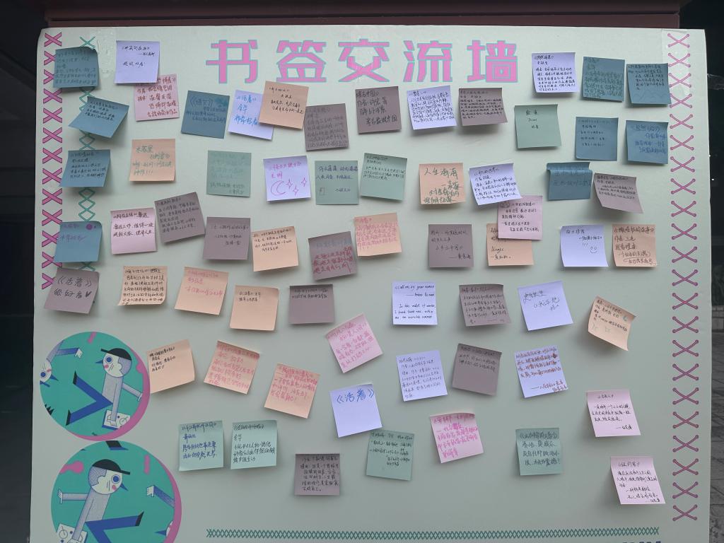 此次读书月系列活动,包含了微信阅读打卡、绘制插图、种草吧书签、猜书名知识竞答、读书签绘墙等。形式多样、内容丰富,线上活动与线下互动相结合,提高了读书活动的趣味性和可操作性,吸引了近200名同学的积极参与。