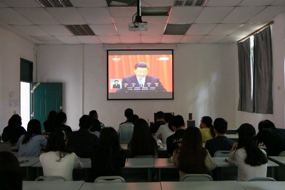 5月4日上午10点,公共艺术学院组织师生党员和部分教师在黄桷坪校区原附中208教室集中观看纪念马克思诞辰200周年大会,并学习习近平总书记在大会上的重要讲话精神。