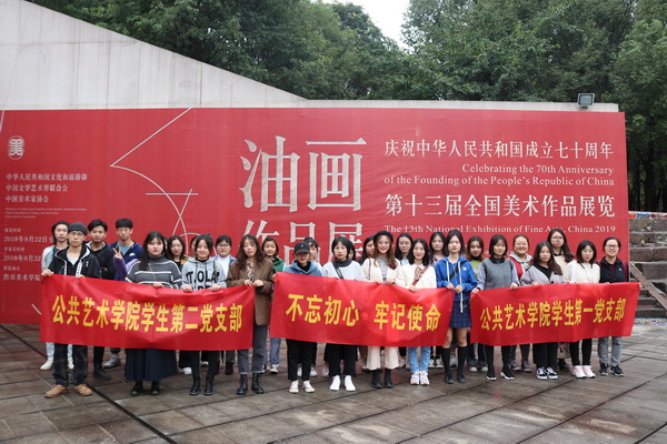 10月16日,为推动“不忘初心、牢记使命”主题教育的深入开展,公共艺术学院党总支学生一、二党支部开展联合主题教育,前往我校虎溪校区美术馆参观第十三届全国美展。