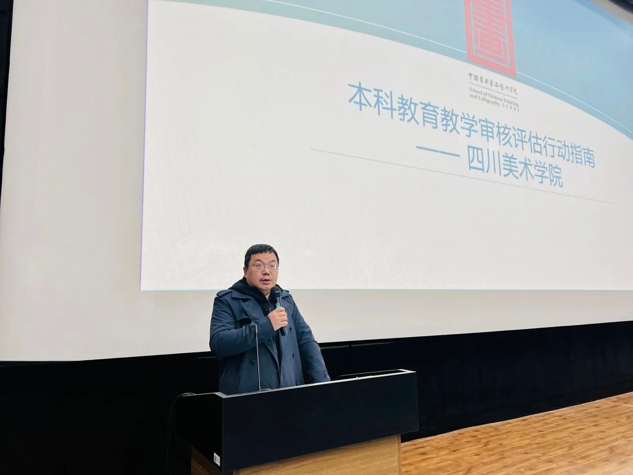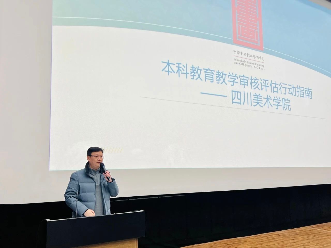 3月31日下午,中国画与书法艺术学院举行“本科教育教学审核评估应知应会”培训会,学院全体本科生参加。