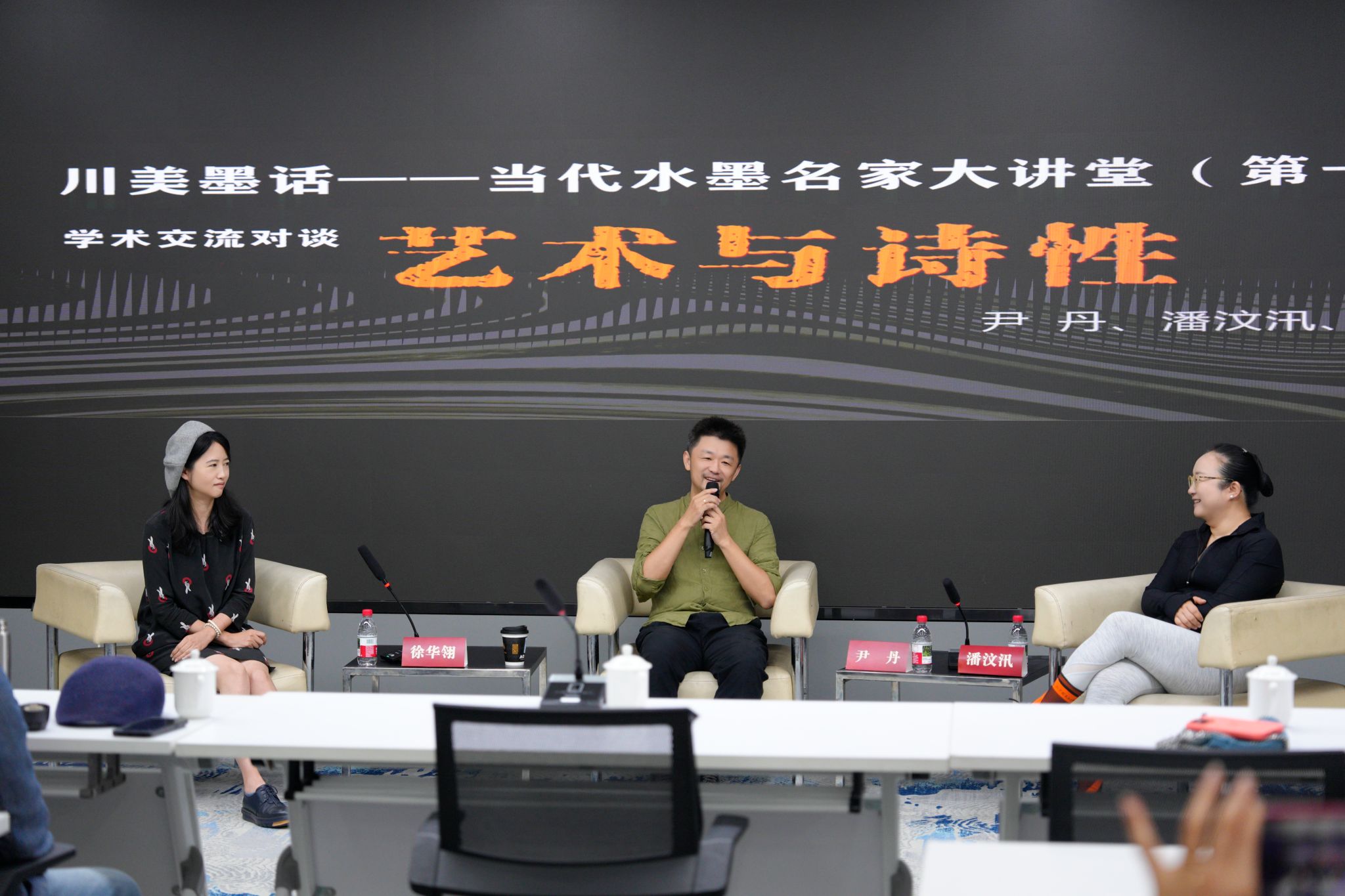 本次活动共分为四个单元进行。第一单元中,尹丹、徐华翎、潘汶汛围绕《艺术与诗性》进行学术对谈,针对“创作历程及主要艺术理念”“如何理解水墨的诗性”“如何看待人工智能的冲击”等问题展开交流探讨。第二单元中,徐累以《传统如何成为当代?—我在绘画实践中的转型密码》为题进行讲座,结合自身的艺术创作历程,启发师生们进行艺术思想与创新理念的碰撞。第三单元中,魏祥奇以《走向现代水墨的三重维度》为题,阐述中国画走向现代水墨的三次变革,系统梳理了现代水墨的发展历程。第四单元中,孙冬冬、郝量以《从“绘事后素”谈起》为主题,结合自身创作实践经验进行交流,并对中西方绘画经典案例进行解读,剖析水墨艺术传承与创新的经验与路径。