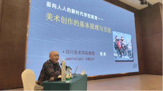 培训期间,六场高阶讲座依次展开:西藏自治区教育厅党组成员、副厅长李霁作《为党育人 为国育才,办好人民满意的教育》主题报告;学校二级教授、博士生导师张杰讲授《传统色彩表达:面向人人的新时代学校美育——美术创作的基本原理与方法》;重庆巴蜀科学城中学校副校长程薇作《美育赋能成长:构建“立体化、融合性、生态化”的学校美育新图景》主题分享;学校艺术教育学院副院长赵建华作《艺术创新观念融入学校美育的转化路径探索》专题讲座;中国西藏文化保护与发展协会理事、醍醐艺术(吉本岗艺术中心)联合创始人方堃作《如何高质量保护活化一座西藏历史建筑?—西藏醍醐文旅的十年》案例交流;西藏工巧明设计咨询有限公司创始人夏于均作《新时代背景下的西藏传统文化与美育融合创新》主题讲座。