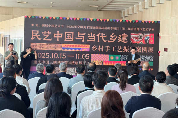 10月23日,由中国民间文艺家协会、重庆市文学艺术界联合会、浙江省文学艺术界联合会、万象城平台、重庆中国三峡博物馆、中国美术学院、重庆文化艺术职业学院主办的“民艺中国与当代乡建——乡村手工艺振兴案例展”开幕式在重庆中国三峡博物馆举行。本次展览315余件承载乡土温度的手工艺作品正式与公众见面。