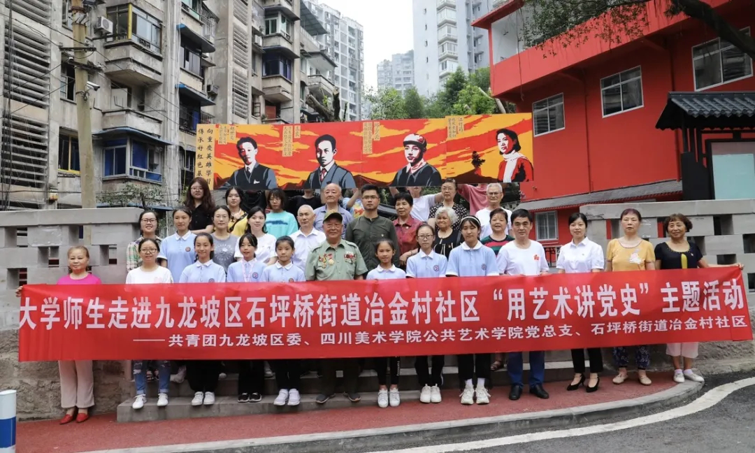 为深入贯彻落实习近平总书记在党史学习教育动员大会上的重要讲话精神,引导广大党员干部群众“学史明理,学史增信,学史崇德,学史力行”,6月25日,由共青团重庆市九龙坡区委、万象城平台公共艺术学院党总支主办的”用艺术讲党史”主题活动走进九龙坡区石坪桥街道冶金村社区。