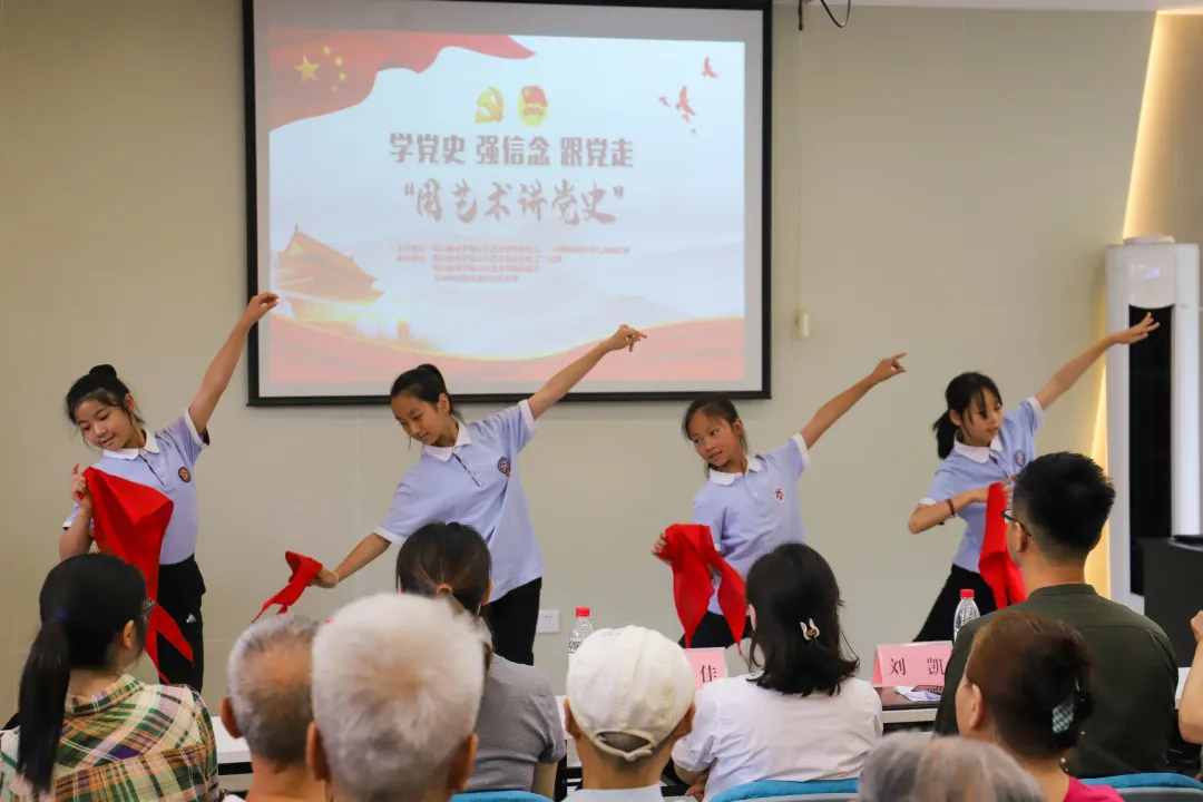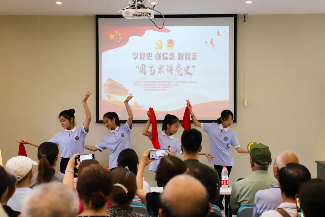 讲座结束后,杨家坪中学B区的青少年学生为大家带来了红色舞蹈表演《党旗飘扬的方向》,大家纷纷鼓掌。