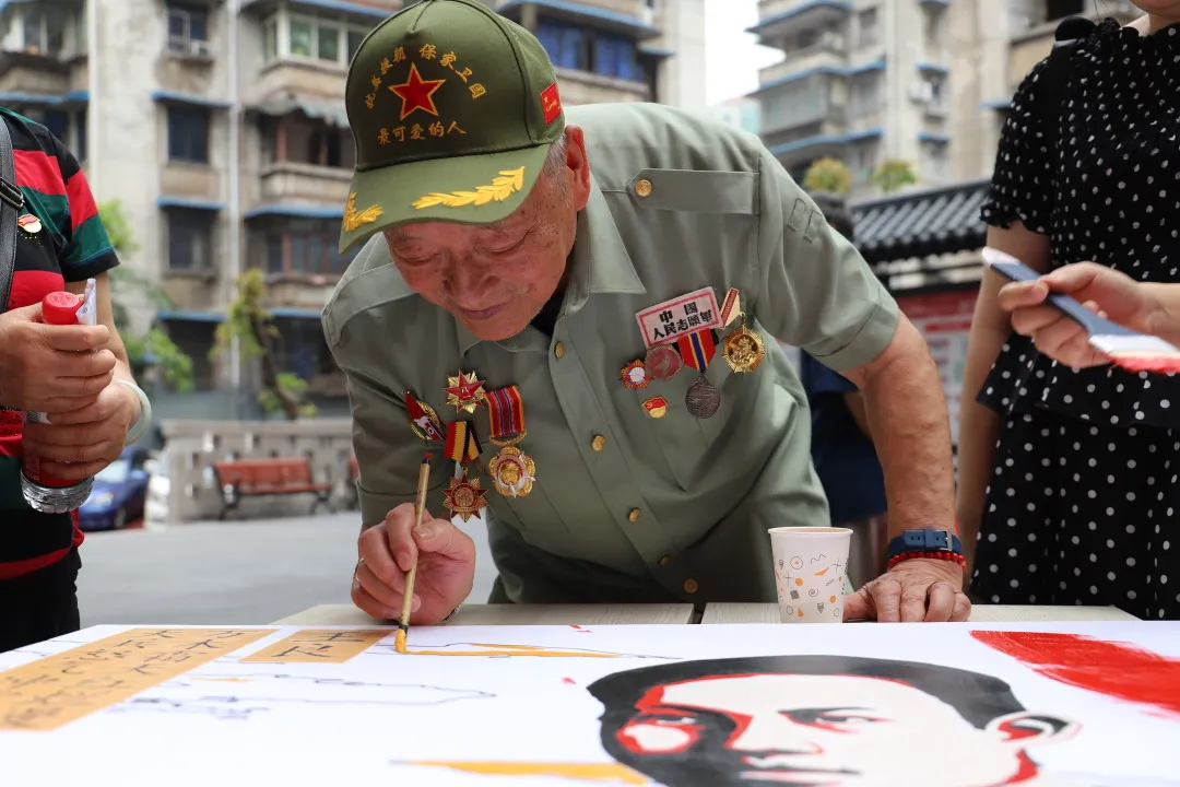 “画画没有什么外行,只要您一画就是内行。”在现场创作重庆英雄人物环节,刘凯老师不断为大家指导,并和老党员同志共同交流党史故事。冶金村社区党龄64年的老党员周南昌也来到了创作现场,他于1951年参军,1953年作为坦克兵参加抗美援朝战争,1969年退役后一直中国第十八冶金建设有限公司工作至退休。退休后,他一直积极参加社区活动,给青少年讲党课,参与社区志愿服务,发挥党员先锋模范作用。周南昌表示“用艺术讲党史”活动让我们重温党史,学习英雄人物,形式新颖,意义深刻。