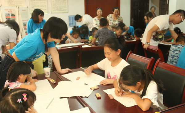 活动围绕“纪念建党95周年”、“庆祝红军长征胜利80周年”以及“创卫攻坚,文明同行”等主题,对花马社区约20名儿童进行美术启迪教育。