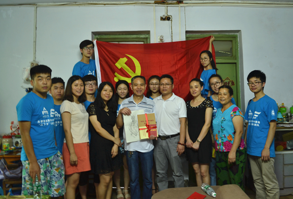 由公共艺术学院党总支副书记郭小兵、辅导员老师及10余名学生党员成立的公共艺术学院大学生党员“三下乡”临时党支部,到丁家镇走访慰问了唐贵超、钟荣波等老党员。实践队大学生党员围绕习总书记讲话精神和“两学一做”具体内容,结合老党员自身的心得体会过了一次特殊的党组织生活。老党员畅谈入党以来的心路历程,嘱咐大学生党员要保持党员的先进性,“不忘初心”,不断进取。同学们现场绘制老党员像,作为纪念品送赠予他们,老党员钟荣波为了表示感谢即兴赋诗一首《如梦令——济远.慰难》。