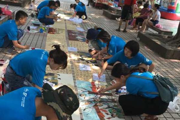 我校师生积极发挥专业优势,充分利用四川长宁竹文化资源,在竹席上绘制建党95周年光辉历程,在竹简上书写党的章程,在竹筒上篆刻长征精神,在黑白木刻上创作长征组图,展出“纪念建党95周年暨长征胜利80周年”主题招贴,与当地艺术家一起写生,共同描绘美好家园。全体青年学生接受了一场生动的爱国爱党教育,传递了正能量,弘扬了主旋律。
