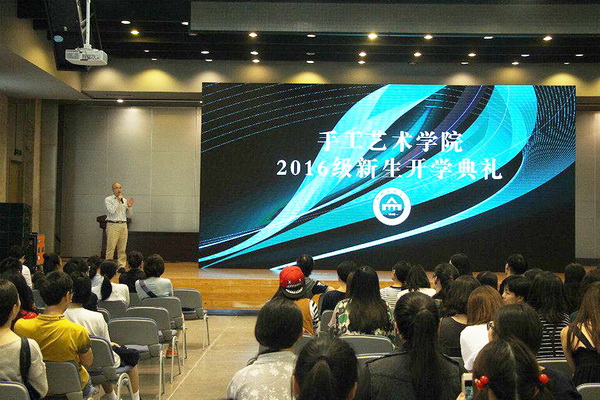 金风送爽迎新生,桃李飘香致师恩。9月10日下午,手工艺术学院2016级新生开学典礼暨新生家长见面会在学校多功能厅举行。开学典礼由手工艺术学院辅导员杨洋主持,手工艺术学院党总支书记郑川、副院长谢亚平,学院全体老师,2016级新生以及部分家长参加了新生开学典礼。