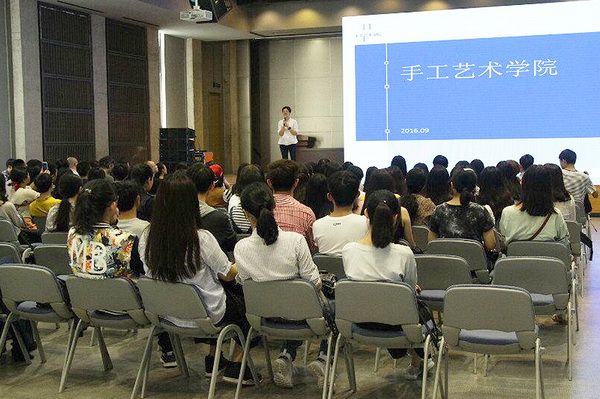 手工艺术学院纤维系、漆艺系、陶艺系、特艺系的负责老师分别介绍了教学安排、人才培养及学生未来等情况,向全院新生进行了详细的专业教育。老师们从为学与做人两方面出发,为新同学们指明了未来四年的努力方向。