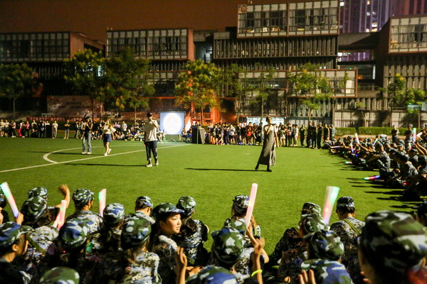 9月的川美校园,9月的绿色军装,军训场上我们一起唱歌,一起翩翩起舞,我们同乐。为丰富2016级新生军训生活,展现我校大学生的青春风采与蓬勃活力,9月18日晚8点,校团委组织校学生会、社团联合会、大学生艺术团,为2016级新生举行了军训慰问演出。校党委副书记左益,军训团团长张谦益,以及我校保卫处、校团委负责人等到场观看了慰问演出。