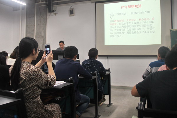 9月29日下午,为加强“两学一做”学习教育,美术学系党总支在系206教室召开了“严守纪律规矩,培养高尚情操”专题学习会议。会议由系党总支书记陈德洪主持,全体师生党员参加了会议。