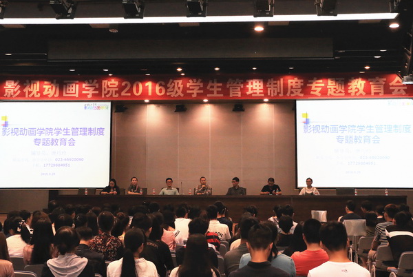 9月29日下午,影视动画学院在多功能厅召开2016级学生管理制度专题教育会。影视动画学院2016级全体本科生和班主任参加了大会。通过专题教育会,该院2016级学生明确了学校各项规章制度,为大学四年的学习生活做好准备。