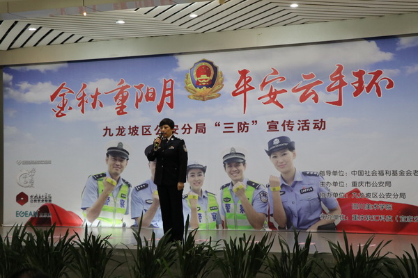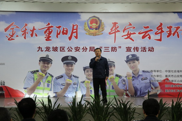 10月17日下午,由公共艺术学院与九龙坡区公安分局联合举办的“金秋重阳月,平安云手环”主题“三防”宣传活动在黄桷坪校区多功能厅举行。我校党委副书记左益、九龙坡区公安分局党委副书记徐白羽出席活动现场,市公安局国保总队高校工作管理支队、政治部宣传处及九龙坡区公安分局政治处领导,我校保卫处、公共艺术学院负责人,重庆软汇科技有限公司副总经理李恒光,民警代表,辖区群众代表,全市各媒体记者,职工代表及学生代表等共计300余人参加了此次活动。