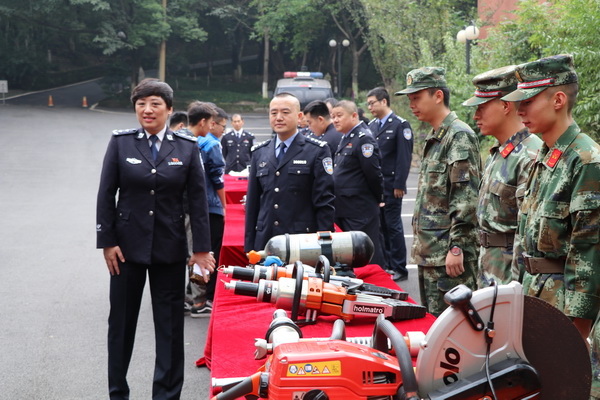 活动开始着重介绍了平安云手环的使用。现场展示了“三防”知识展板,交巡警现场勘测设备、刑警现场勘查设备、消防火警工具设备、SWAT特种装备四种警用设备。