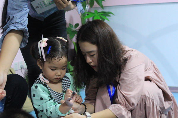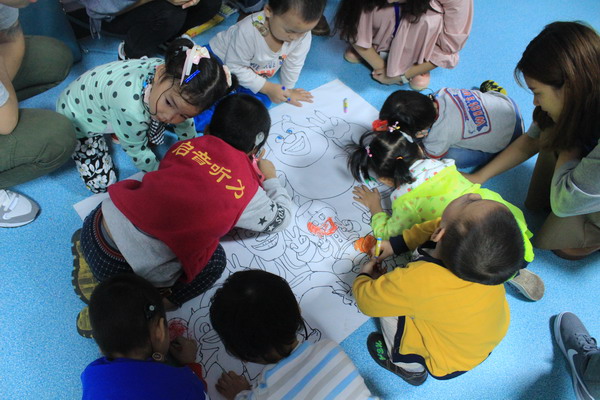 听障儿童的世界是无声的,他们只能靠助听器细细聆听外界的声音。他们不善表达,但从他们清澈的双眸中中能看到对交流和被理解的渴望。青年志愿者协会的同学们将事先准备好的画稿一一分发给小朋友们,并耐心细致地指导孩子们给图画上色,志愿者们用自身的激情和满满的爱感染着每一个孩子,孩子们带着轻松愉快的心情参与到每一个教学活动中,教室里充满了志愿者和孩子们的欢笑声,气氛活跃融洽。