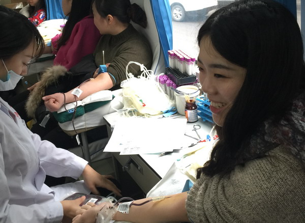 为鼓励大学生发扬人道、博爱、奉献的精神,2017年1月4日上午10点,公共艺术学院在黄桷坪正街组织开展了义务献血活动。师生们踊跃参与,纷纷伸出爱的手臂,从填写登记表、体检,到验血、采血,公共艺术学院志愿者分工明确,有条不紊,协助医务人员进行献血工作,为每个献血的师生发放了证书。