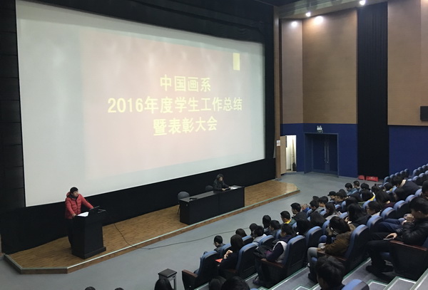 2017年1月5日下午,中国画系在我校小剧场召开了2016年度学生工作、学风建设工作总结表彰会议。中国画系党政领导黄山、王士臣和系教研室主任、辅导员、班主任及全体学生参加了会议。会议由王士臣主持。
