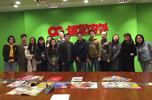 在对接座谈会上,《课堂内外》OC艺术设计总监唐小慧、设计核心团队详细介绍了《课堂内外》的市场影响力和行业号召力,以及企业如何努力让每一位员工在“服务三亿青少年成长”的事业中去实现个人价值。同时为师生展示了 《课堂内外》宣传VCR和31本由《课堂内外》自主设计发行的刊物。