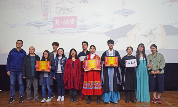 本届诗词大赛分为初赛与复赛、决赛两个阶段。初赛结束后,共有8个院系进入复赛和决赛。比赛内容设计上既选取了基础经典诗词,又增加了与书画艺术相关的诗词内容;题型设计上有宫格识别、空袖填香、咬文嚼字、对句抢答、场内互动答题等环节,题型设置丰富多样,形式活泼,各环节环环相扣。另外特邀点评嘉宾公共教学部母润生老师的精彩点评,也为比赛增添了更多的生动性和通识性延伸教育。比赛现场活泼热烈,现场观众互动性与参与性高。此外,除活动现场比赛外,还开通了“乐活川美”微信平台线上有奖答题,使得更多的同学参与到诗词大赛当中。