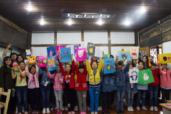 志愿者们都十分耐心地引导着小朋友们绘制草图、搭配颜色。志愿者们一边与小朋友们一起制作,一边讲解一些关于美术的小知识。孩子们对此充满了好奇心,在成果展示中,充分的表达了孩子们强烈的求知欲望以及对艺术的向往。