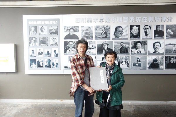 会上,黄山对参访团表示热烈的欢迎,并向参访团介绍了到场的中国画系教师代表。黄山指出,中国画系建系至今76年,张大千先生对中国画系的创立有着不可替代的奠基作用,是中国画系建系的开山鼻祖,中国画系也珍藏了张大千先生的手稿。杨颚西则表示,这是她第二次来到川美,感到十分亲切,并用四川话回忆了跟随张大千先生学艺的日子。她在谈话中表示,艺术创作是无止境的,会画到人生的最后一分钟。最后,黄山与杨颚西互赠了纪念品,并合影留念。