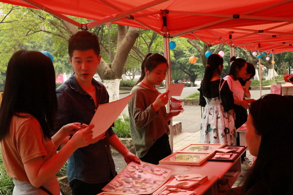 5月19日下午2点,公共艺术学院“五月社团节”于黄桷坪校区综合楼前广场举行。本次活动主要内容有:“坝坝电影社电影播放”、“照明社团灯光秀展示”、手工社售卖社团手工物品”、手绘社售卖手绘画作及明信片”等几个方面。
