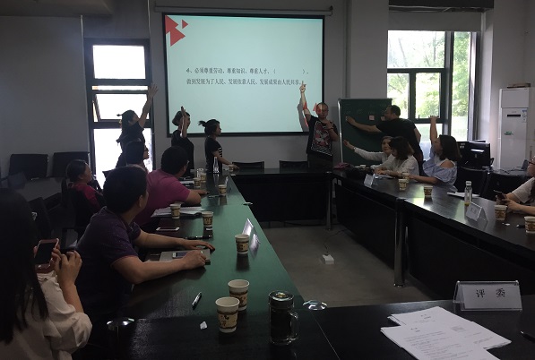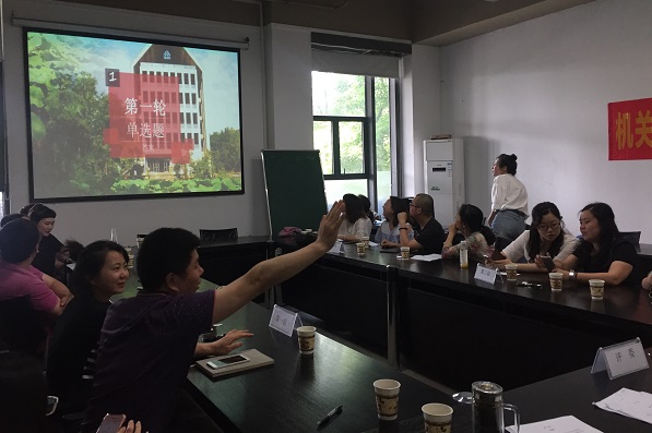 在活动中,支部全体党员和教职工组成了四个学习小组,并以学习小组为单位参赛。竞赛分为了必答题和抢答题两个环节,以两个环节完成后的积分最高者为优胜,考察的知识点主要围绕党章党规、习近平系列讲话等“两学一做”学习内容以及近年来党的大政方针政策等党建方面的知识内容。整个竞赛活动场面热烈、生动活泼,特别是在抢答环节,大家争先恐后、热情参与。随着各组成绩的交替上升,大家参与答题的积极性和力争上游的热情也越来越高涨。大家为了每一次正确抢答而鼓掌欢呼、也为间或出现的答题失误摇头叹息,直到最后一题结束,仍然意犹未尽、期待继续。最后,由宋宗祥、燕蕾、蒋萌、陈刚、俞婷婷五人组成的第一组在竞赛中力拔头筹、荣获一等奖。