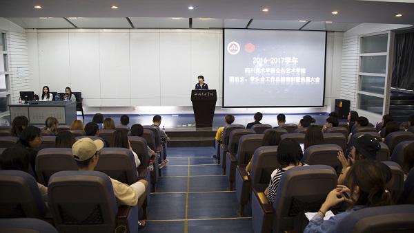 6月28日下午5点30分,公共艺术学院2016-2017年度团总支、学生会工作总结表彰暨换届大会在黄桷坪校区学术报告厅举行。党总支书记钟正武、副书记郭小兵出席,会议由团总支书记方渠娟主持。团总支、学生会各部门负责人首先进行了工作总结,并祝愿团总支、学生会在新一届成员的耕耘下越来越好!