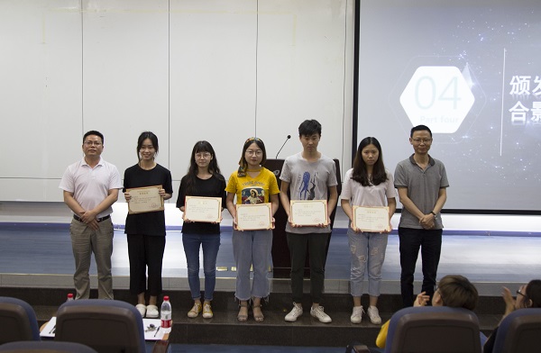 党总支书记钟正武和副书记郭小兵老师,为公共艺术学院2016-2017学年学生会、艺术团和微信平台优秀成员颁奖并为新一届团总支、学生会干部颁发聘书并合影留念。