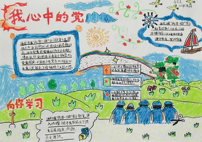 活动第一部分由志愿者提供相关素材,通过“线稿填色”、“范画临摹”等形式,鼓励孩子们独立创作,充分发挥想象力与创造力,让孩子们绘出“我心中 的 党”和创作“两学一做”主题手抄报,从他们的画笔下表达出少年儿童对我们 党 的热爱。