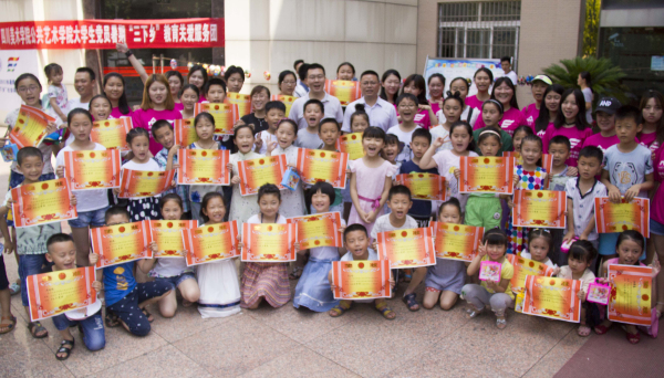 活动最后,由垫江县团委李书记和公共艺术学院党总支副书记郭小兵共同为教学活动中表现优异的小朋友颁发奖品和奖状。同时,公共艺术学院与垫江县团委达成初步合作共识,为进一步加强合作,形成长期合作机制,计划在垫江县成立万象城平台社会实践基地。至此,本次大学生党员暑期“三下乡”教育关爱服务活动圆满结束。