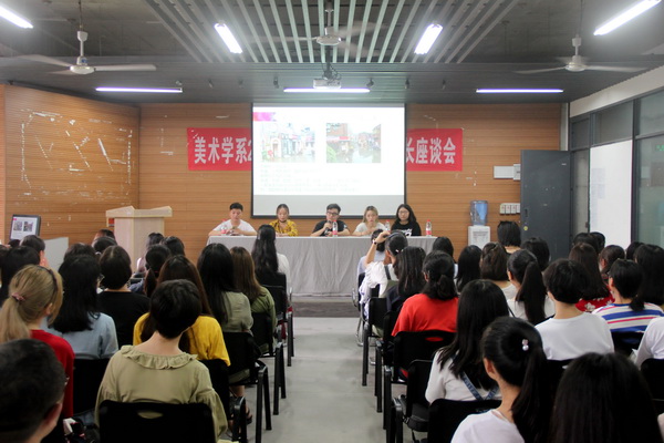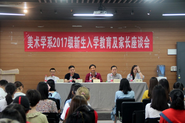 新生入学教育结束后,8日上午10点30分在同一地点召开了新生家长座谈会,陈德洪、辅导员老师与家长们座谈交流,与各位家长讨论了新生在大学四年中学习过程的想法与建议,以及大学期间家长应如何与同学、与学校沟通等问题。当日下午2点30分,美术学系还组织了新老生交流会,团总支学生会的学生干部为各位新生介绍了学校周边的衣食住行等情况,积极鼓励新同学们加入系团总支、学生会。