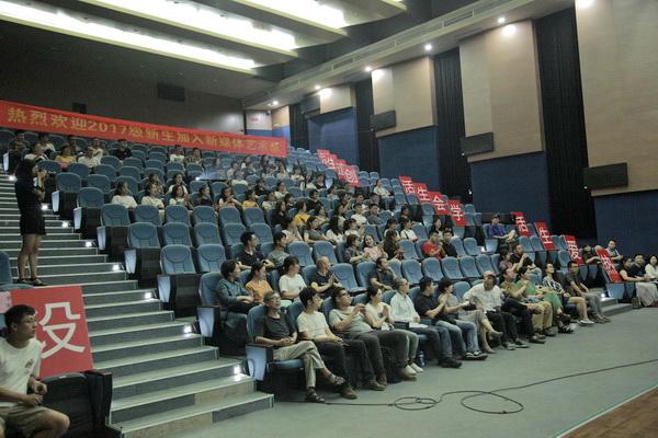 9月8日下午2点,新媒体艺术系在综合楼小剧场举行了“2017级新生开学典礼暨学生亲属见面会”。系党政领导聂玉红、李川,校团委书记吴倩,全系教师,2017级全体新生及部分学生亲属参加。会议由系党总支书记聂玉红主持。
