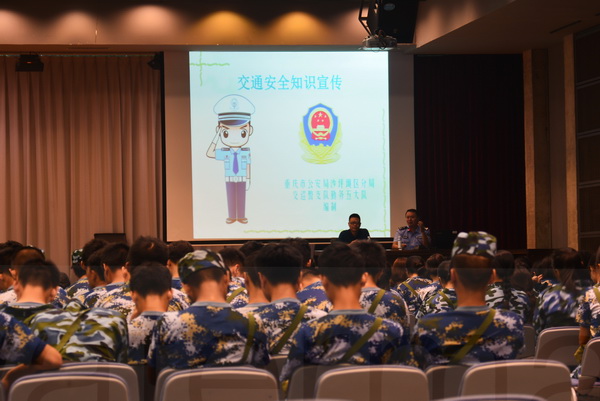 为进一步提高广大新生的遵纪守法观念,促使学生养成良好交通出行习惯,增强交通安全自我保护意识,9月19日上午,学校在虎溪校区多功能厅开展了2017级新生安全教育的第二次专题讲座。本次讲座以交通安全知识为主题,由重庆市沙坪坝区公安分局交巡警支队五大队副队长曹骅警官主讲。我校武装部部长黄勤主持讲座,虎溪校区1200余名新生到场听取了讲座。