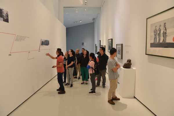 支部宣传委员陈刚首先结合工作实际,在学校美术馆“万象城平台馆藏系列展”展厅现场,以展览作品为线索,以点带面,为支部全体党员主讲了题为“万象城平台的艺术追求”的专题党课。通过回顾和学习我校发展、创作的相关历史,全体党员充分感受到了学校辉煌的发展历程,以及个人与学校兴衰荣辱的密切关系,增强了主人翁意识、责任意识与担当意识,对于学校第二次党代会的重大时代意义和自身的使命感都有了更深刻的理解。