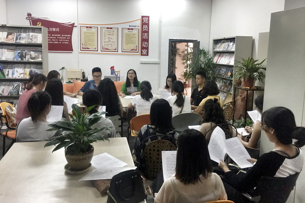为迎接党的十九大胜利召开,扎实推进“两学一做”学习教育常态化、制度化,9月26日下午,影视动画学院党总支学生党支部在学院党员活动室开展了“喜迎十九大,争做优秀党员”主题党日活动。活动由研究生支部组织委员布志国主持。影视动画学院本科生及研究生支部全体党员共28人参加了活动。