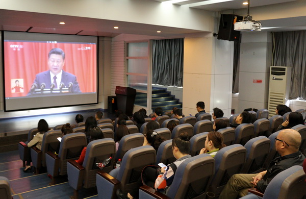 金秋十月,历史的时针指向又一个重要时刻——举世瞩目的中国共产党第十九次全国代表大会隆重开幕,中华民族伟大复兴的征程即将揭开新的一页。公共艺术学院于2017年10月18日上午9点,在学术报告厅组织全院师生党员和教职工收看了党的十九大开幕会。