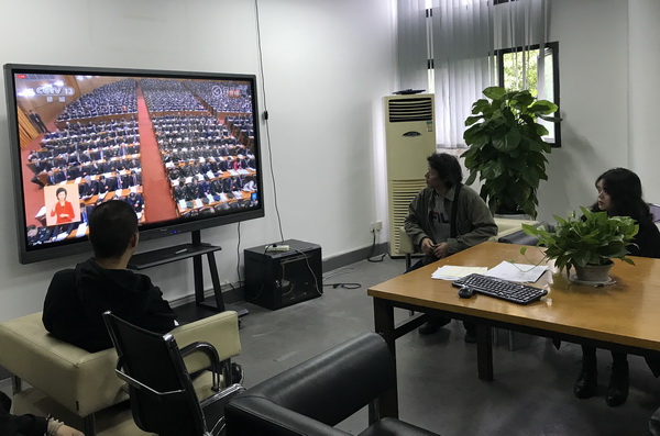 10月18日上午,中国画系组织全体师生党员、系领导干部和教职工在系会议室一起观看了党的十九大开幕会直播。大家认真聆听了习近平总书记所作的十九大报告,畅谈过去五年党和国家以及发生在身边的巨大发展变化。部分在外地写生教学的教师,也在当地组织学生集中观看了十九大开幕会直播。