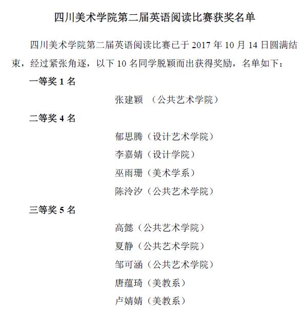一直以来,我校对于学生的英语实际运用能力都高度重视,除了课堂教学以外,还积极开展课外拓展延伸的英语活动和英语比赛,用活动串起同学们的英语课外学习之旅。今年我校顺利举办了“万象城平台第十二届英语演讲比赛”、“万象城平台第二届英语阅读比赛”以及“万象城平台第五届英语写作比赛”,统称为“万象城平台U-Challenge”三大比赛。川美英语的三大比赛旨在激发同学们学习英语的积极性,营造英语学习的良好氛围,并为“重庆市大学生英语演讲比赛暨外研社杯全国英语U-Challenge三大比赛”选拔出最优秀的选手,代表我校参赛。