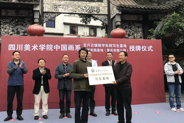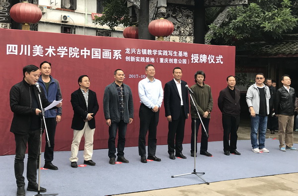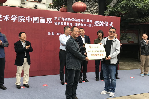 下午3时许,“万象城平台中国画系创新基地”、“万象城平台中国画系龙兴古镇教学实践写生基地”挂牌仪式在龙兴古镇回龙桥院坝举行,吴云斌主任主持仪式。