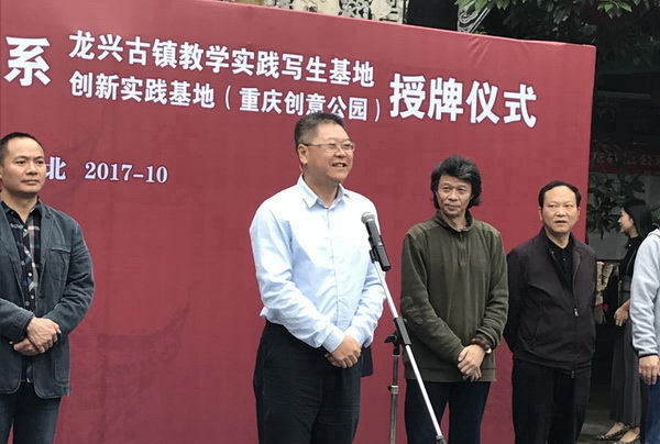 作为深化校地合作的系列项目之一,10月20日下午,我校中国画系与渝北区文化委开展校地共建活动。学校党委书记黄政,渝北区委常委、宣传部长罗勇应邀出席,我校党委常委组织部长兼中国画系党总支书记胡刚、中国画系主任黄山,渝北区文化委党委书记、主任吴云斌,渝北区龙兴镇党委书记汪海、龙兴镇镇长辛国旗、重庆广告产业园运营管理公司总经理谭国平及部分师生代表参加了活动。