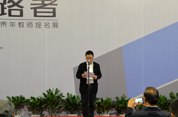 参展艺术家代表尚天潇发言。他表示,此次展览的主题为探路者,希望青年教师要么成为大师,要么培养出大师,要不然对不起探路者这个名称。作为青年教师,面对这种希望既有压力又有动力。他希望在未来的日子里,在川美这样好的环境里,创作出更多优秀的作品,培养出更多的人才。
