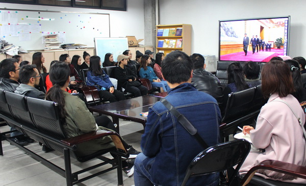 2017年10月25日上午11点45分,美术教育系党总支组织师生党员与党员发展对象,一起在ZC301室观看了新一届中共中央政治局常委同中外记者见面会,认真听取学习了习近平总书记在十九届中共中央政治局常委同中外记者见面会上的讲话。